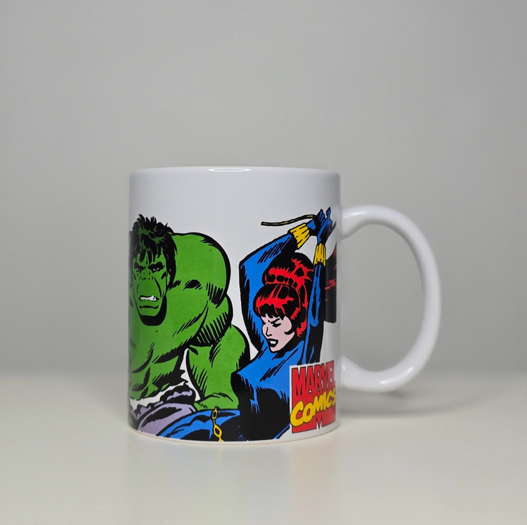 اگر از طرفداران پروشاقرص دنیای کمیک و قهرمانان مارول هستید، این ماگ مخصوص شماست! این ماگ سرامیکی با طرحی نوستالژیک و کلاسیک از هالک (Hulk) و بلک ویدو (Black Widow) طراحی شده است. سبک هنری چاپ روی این ماگ مستقیماً از دل کمیکبوکهای قدیمی بیرون آمده و حس و حالی خاص به میز کار یا آشپزخانه شما میدهد.