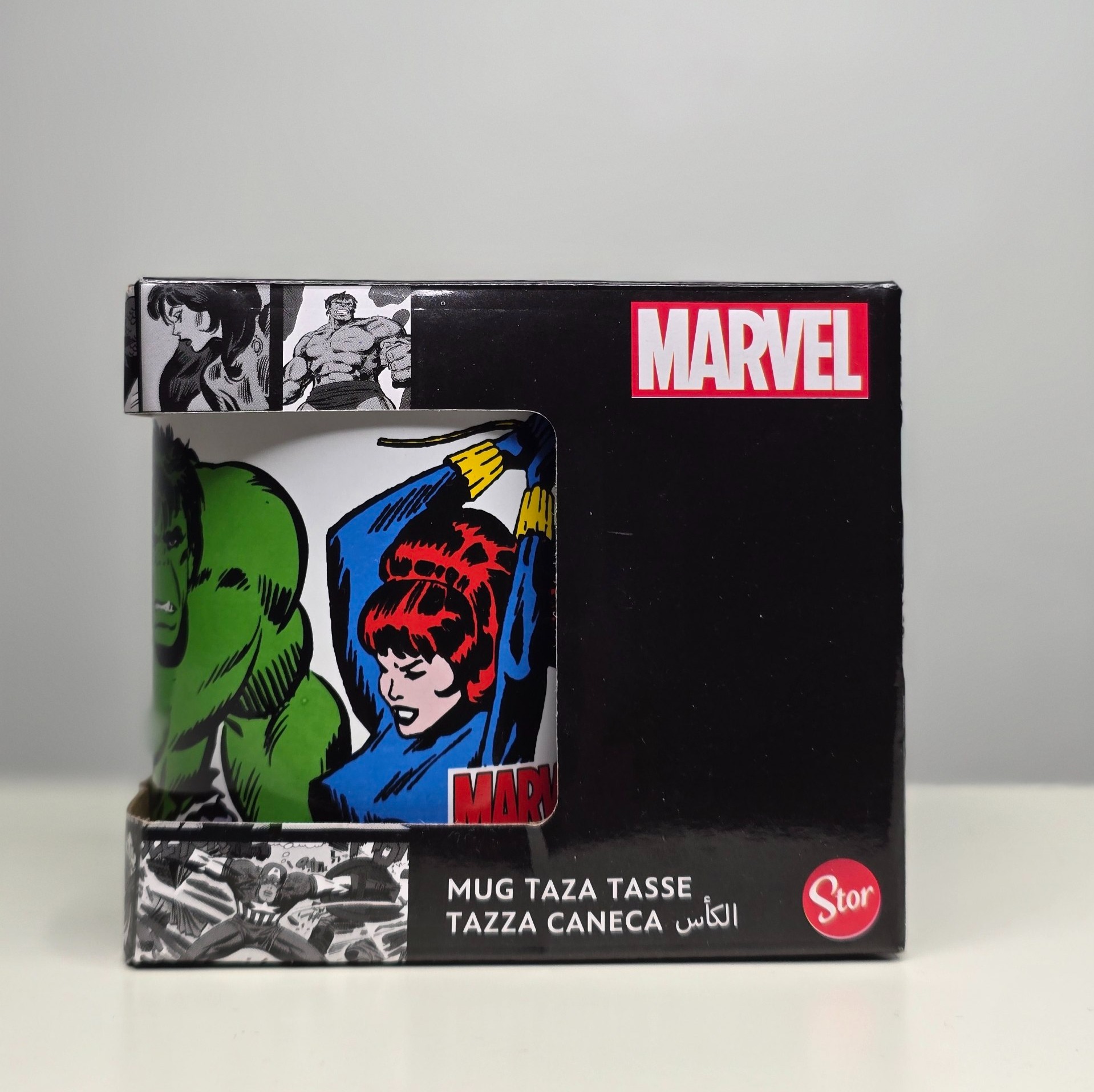 اگر از طرفداران پروشاقرص دنیای کمیک و قهرمانان مارول هستید، این ماگ مخصوص شماست! این ماگ سرامیکی با طرحی نوستالژیک و کلاسیک از هالک (Hulk) و بلک ویدو (Black Widow) طراحی شده است. سبک هنری چاپ روی این ماگ مستقیماً از دل کمیکبوکهای قدیمی بیرون آمده و حس و حالی خاص به میز کار یا آشپزخانه شما میدهد.
