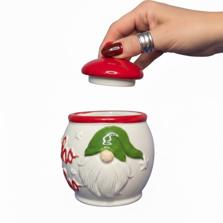 این بانکه سرامیکی طرح کریسمس با مدل جذاب کوتوله (Gnome)، انتخابی ایدهآل برای نظمدهی به آشپزخانه و پذیرایی در شب یلدا و ایام کریسمس است. بدنه این جار از سرامیک باکیفیت ساخته شده و نوشتههای برجسته روی آن جلوهای فانتزی به آن بخشیده است. از این محصول میتوانید به عنوان شکلاتخوری، جای قند و شکر و یا حتی یک هدیه خاص برای دوستانتان استفاده کنید.