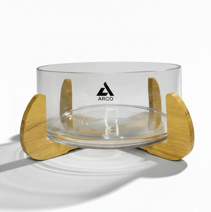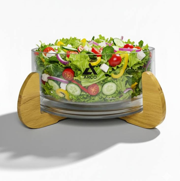 کاسه پذیرایی آرکو (Arco) با طراحی مدرن و مینیمال، انتخابی ایدهآل برای میزهای پذیرایی شیک است. این محصول شامل یک ظرف شیشهای با کیفیت بالا و شفافیت خیرهکننده است که بر روی یک پایه چوبی مستحکم و خوشتراش قرار میگیرد. ترکیب شیشه و چوب، گرمای خاصی به سفره و میز شما میبخشد. مناسب برای سرو انواع سالاد، میوه و خوراکهای سرد.