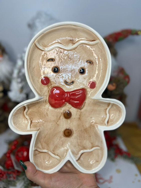 این دیس زیبا، محصولی فوقالعاده برای پذیراییهای خاص شما در مناسبتهایی مثل کریسمس، شب یلدا و جشن تولدها است. طرح جذاب آدمک شیرینی زنجبیلی با پاپیون برجسته قرمز و رنگآمیزی ظریف، جلوه ویژهای به میز شما میبخشد.