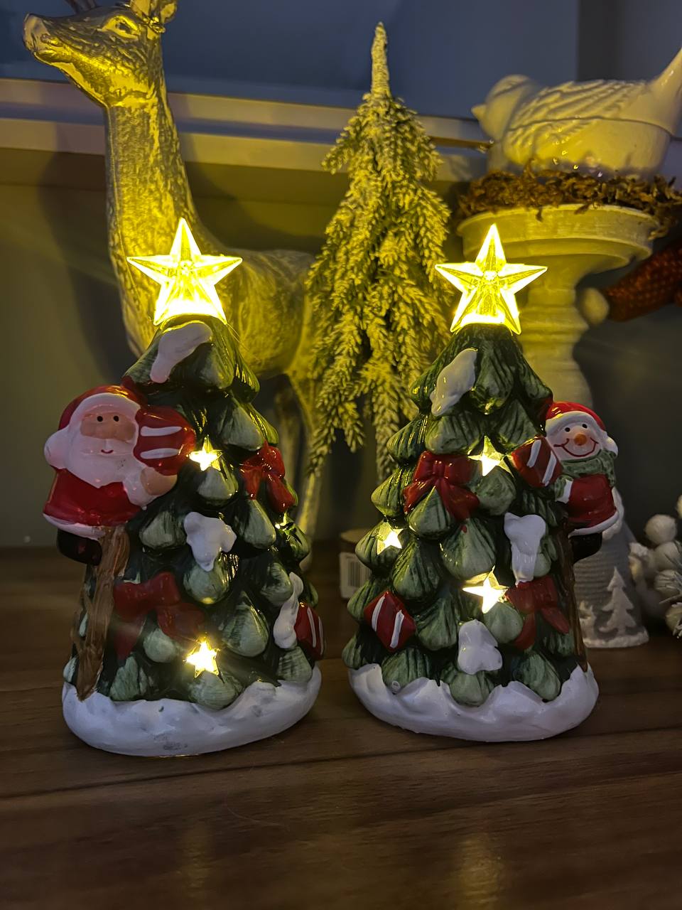 مجسمه دکوری کریسمسی طرح درخت کاج با بابانوئل، مناسب تزیین منزل، میز، ویترین و هدیه کریسمس. طراحی شیک، رنگبندی جذاب و مناسب دکور زمستانی.