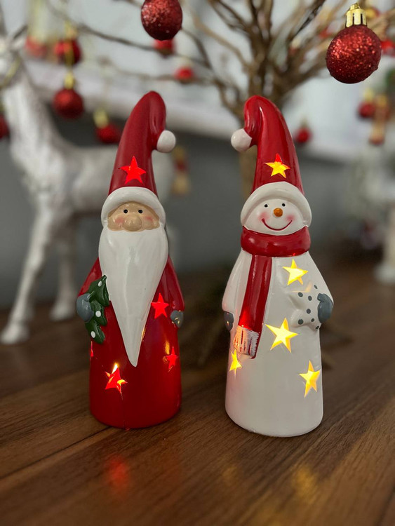 این مجموعه دو عددی از جنس سرامیک با کیفیت ساخته شده و با طراحی ظریف، دارای برشهای ستارهای روی بدنه است که با روشن شدن چراغ داخلی، جلوهای رویایی به محیط میبخشد. این تندیسها به دلیل ابعاد مناسب، گزینهای عالی برای قرارگیری در کنار درخت کریسمس، روی شومینه یا به عنوان هدیه کریسمس برای دوستانتان هستند.