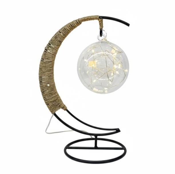 اگر به دنبال تغییری خاص و چشمنواز در دکوراسیون اتاق خواب خود هستید، این چراغ خواب طرح ماه کنفی بهترین انتخاب است. طراحی مینیمال و ترکیب فلز، کنف و حباب شیشهای، جلوهای مدرن و در عین حال گرم به محیط میبخشد.