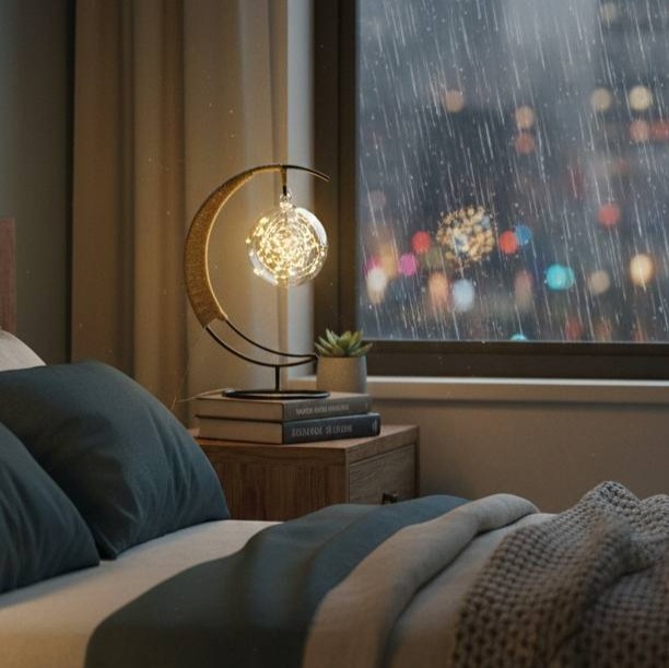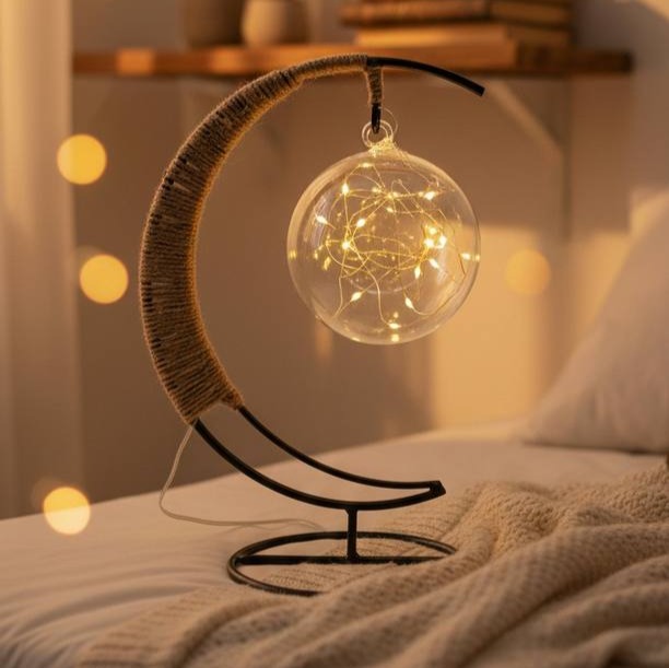 • نور ملایم و آرامبخش: رشتههای LED داخل حباب شیشهای، نوری شبیه به ستارههای شب ایجاد میکنند که برای خوابی عمیق یا مطالعه شبانه ایدهآل است.
