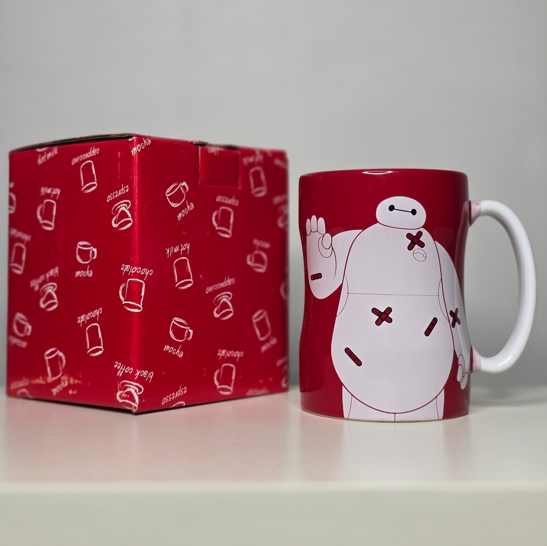 اگر طرفدار دنیای دیزنی و انیمیشن محبوب Big Hero 6 هستید، این ماگ با طرح جذاب بیمکس (Baymax) بهترین انتخاب برای میز کار یا هدیه به دوستانتان است. طراحی خاص این کاراکتر مهربان روی زمینه قرمز درخشان، جلوهای فانتزی و مدرن به نوشیدنیهای شما میدهد.